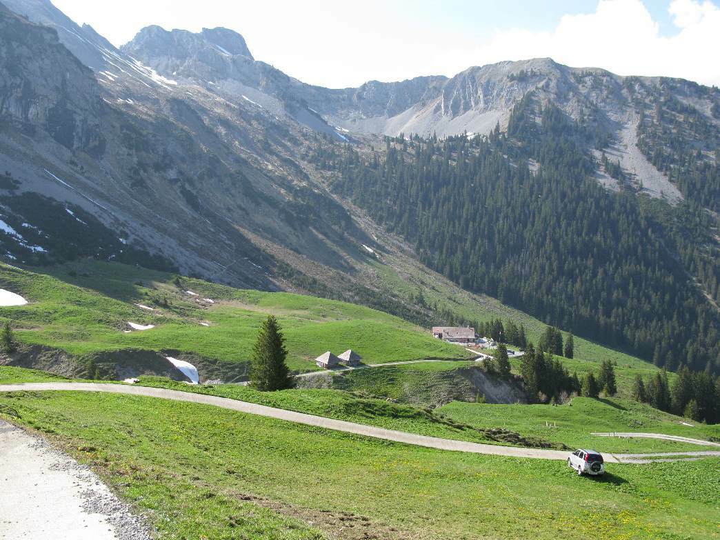 Wir haben am Pfinstsonntag die Tour "Dundelegg" abgefahren und uns hat sie gut gefallen. Der Aufstieg war wie beschrieben zwar lange und steil, aber dank meist geteerten Strassen fast durchwegs fahrbar. Im Nachhinein habe ich noch auf der Karte gesehen, dass das kurze Stück auf der an Wochenenden stark befahrenen Glaubenbielen-Passstrasse beim "Brendenwald" vermieden werden kann, wenn man weiter unten beim "Pörter" links den Berg hoch abzweigt anstatt geradeaus fährt. Inwiefern diese Abkürzung aber von der Steilheit und vom Untergrund her fahrbar ist, müsste ausprobiert werden. Auch wir haben dann in der Beiz Fluonalp Halt gemacht und uns die Älplermagaronen (wirklich zu empfehlen!) einverleibt. Auf der Strasse dorthin haben uns etliche Autos mit Kennzeichen aus allen möglichen Kantonen überholt. Anscheinend scheint die Fluonalp ein beliebter Ausflugsort primär von motorisierten Wanderern zu sein und es war gerade eine "Stubete" im Gange, als ein Trio mit Schwizerörgeli und Bass aufspielte. In der Beiz, welche auch eine Käserei ist, kann sehr feiner Bergkäse (z.B. ein- oder zweijähriger Sbrinz) gekauft werden, dem wir natürlich nicht widerstehen konnten. Weiter aufwärts Richtung Obere Fluonalp kreuzten wir das erste Schneefeld, welches die Strasse noch zum Teil versperrte. Auf dem obersten Teil kurz vor dem Grat musste dann das Bike aufgrund weiterer Schneefelder und erhöhter Steilheit auf matschigem Untergrund wegen dem Schmelzwasser geschoben bzw. kurz geschultert werden.