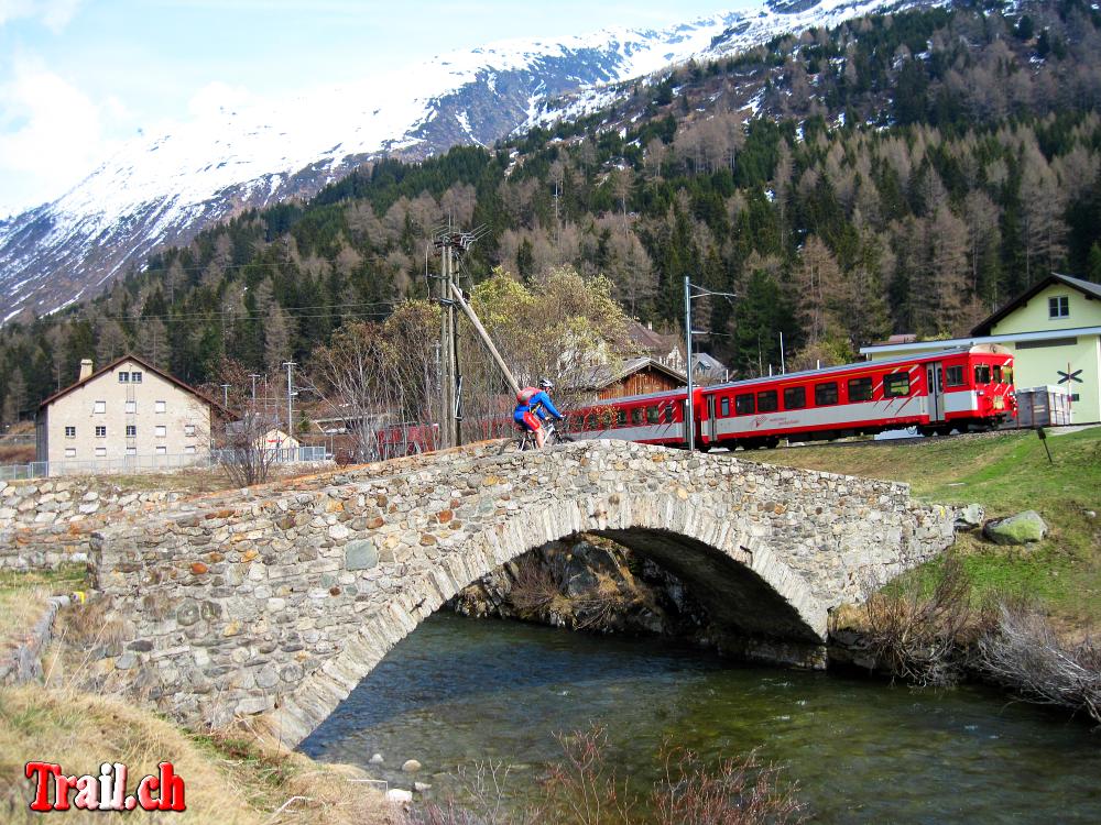 Die alte Säumerbrücke bei Hospental. Hinten die Matterhorn Gotthard Bahn